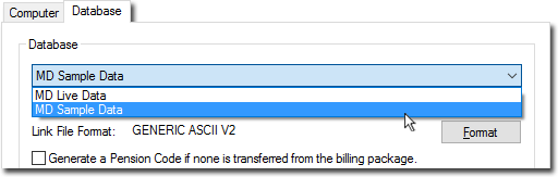 Select the Database tab. From this tab you will configure settings for the MedicalDirector database(s) available to you. Settings made here are global.