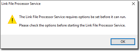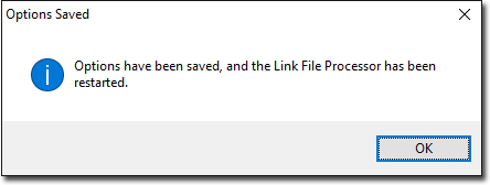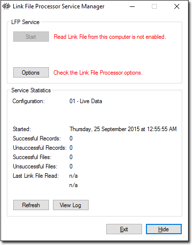 Click OK You will be returned to the Link File Processor Service Manager. It should now indicate that the service is running.