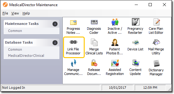 on your desktop. The MedicalDirector > Maintenance window appears. -