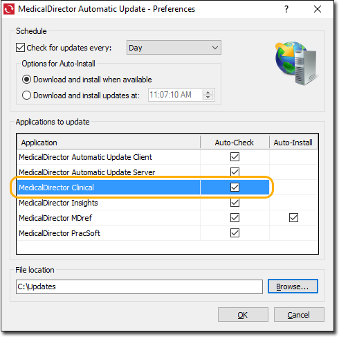 Configure your server computer to detect and download updates to MedicalDirector Software Applications.