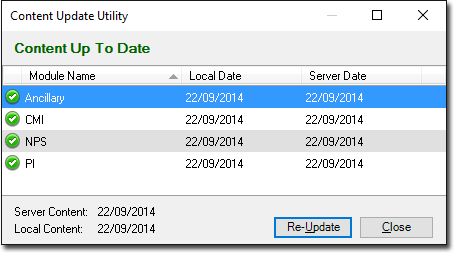 After the updates have finished installing, the Content Update utility window refreshes. Note that from this widow you can now reapply content updates if required, by clicking