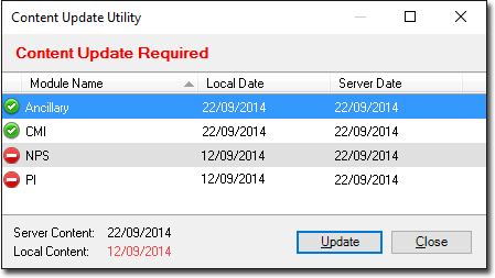 The Content Update Utility appears. If updates are available, you will be notified on this window, as shown in the example below.