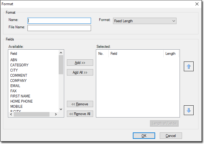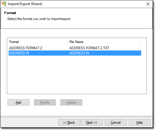 The Format facility is activated when you click the Add button in the Format window when conducting an export, as shown in the following image. When adding or modifying the file format, the Format window is displayed.