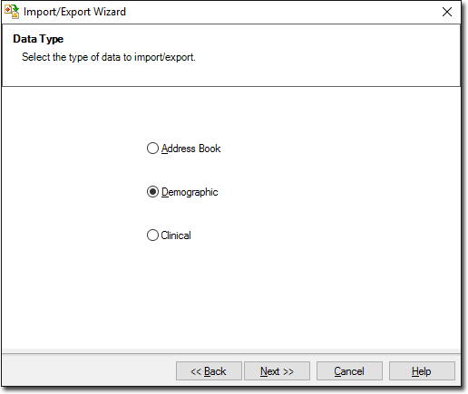 The Data Type window is displayed. Select the Demographic option and click