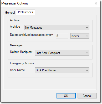 - Select . The Messenger Options (General tab) is displayed.