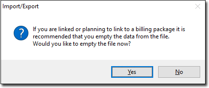 to complete the import process. If you are linked to a billing package (or intend to be) it is recommended that you clear the contents of the file you just imported.