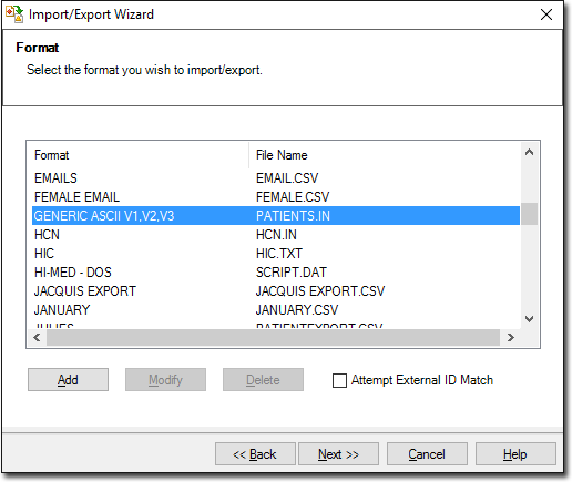 The Select the Format window is displayed. Select a file format that corresponds to the file you want to import.