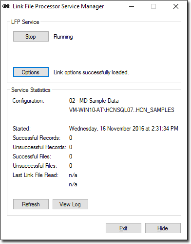 Locate and right-click the link icon in your Windows System Tray, and select LFP Service Manager from the menu that appears. The LFP Service Manager appears.