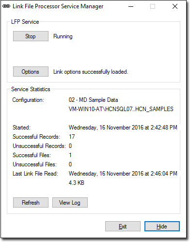 From the menu that appears, select LFP Service Manager. The LFP Service Manager appears. Service statistics are located in the lower section of this window.