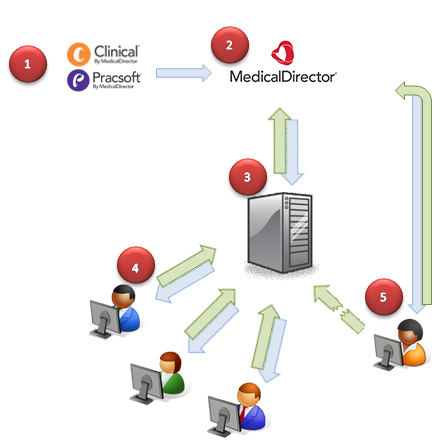 Your Practice's 'Server' computer periodically checks the MedicalDirector web site for updates. When it finds a new update, it