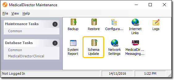 on your desktop. The MedicalDirector Maintenance window appears.