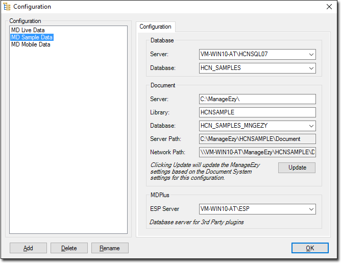 - Click OK to confirm and save the details. You should now be able to run MedicalDirector Clinical and connect to the surgery's database. Note, however that you will not be able to login until a User account for this surgery's database has been created for you.