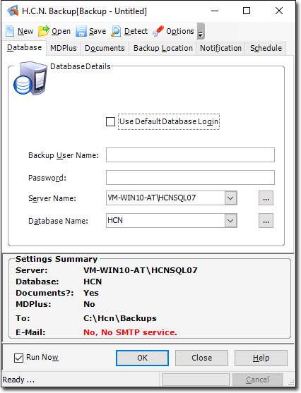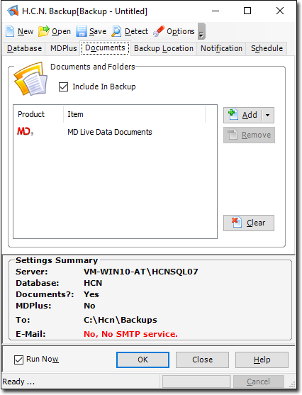 If the SMTP Service is not installed you will be prompted accordingly upon opening the MedicalDirector Backup application.