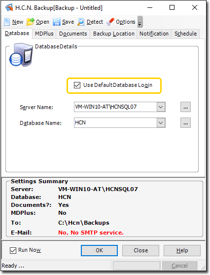 Check the backup log file to ensure that your scheduled backup has been successful. The backup log file is called HcnBackupLog.txt, and is saved to root director of your C: drive.