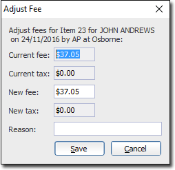 - Enter the new fee, new tax (optional) and a reason for the adjustment.