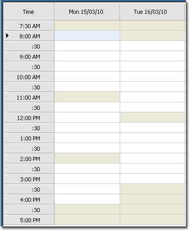 - 'Default' sessions - the default for the entire Appointment Book. Default sessions always override practitioner-specific sessions.