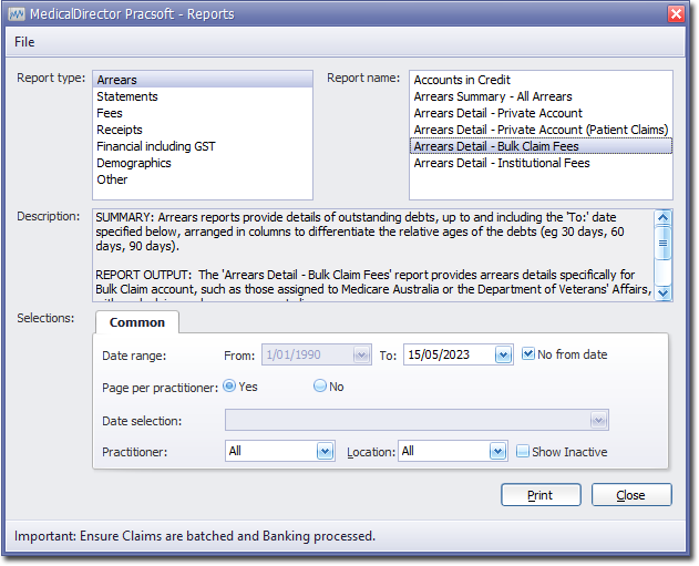 Arrears Detail - Bulk Claim Fees Report