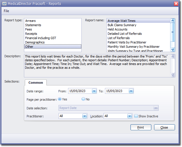 - Indicate whether results for each practitioner will be printed on separate pages.