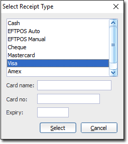 From the menu that appears, select Change Payment Type. The Select Receipt Type window appears.