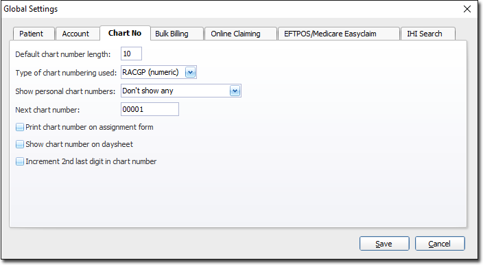 | Default Chart Number Length | Specify the default chart number length. Pracsoft can accept up to 10 characters. |