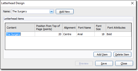 The Letterhead Items section is the area in which you design your letterhead. In the example above we can see that: