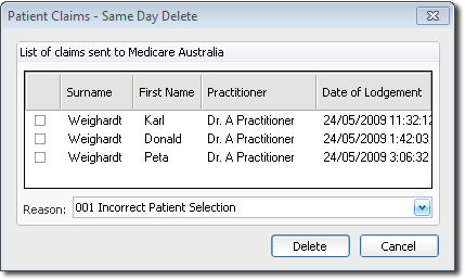 Real-time patient claims sent to Medicare Australia can be deleted on the same day that they were sent.