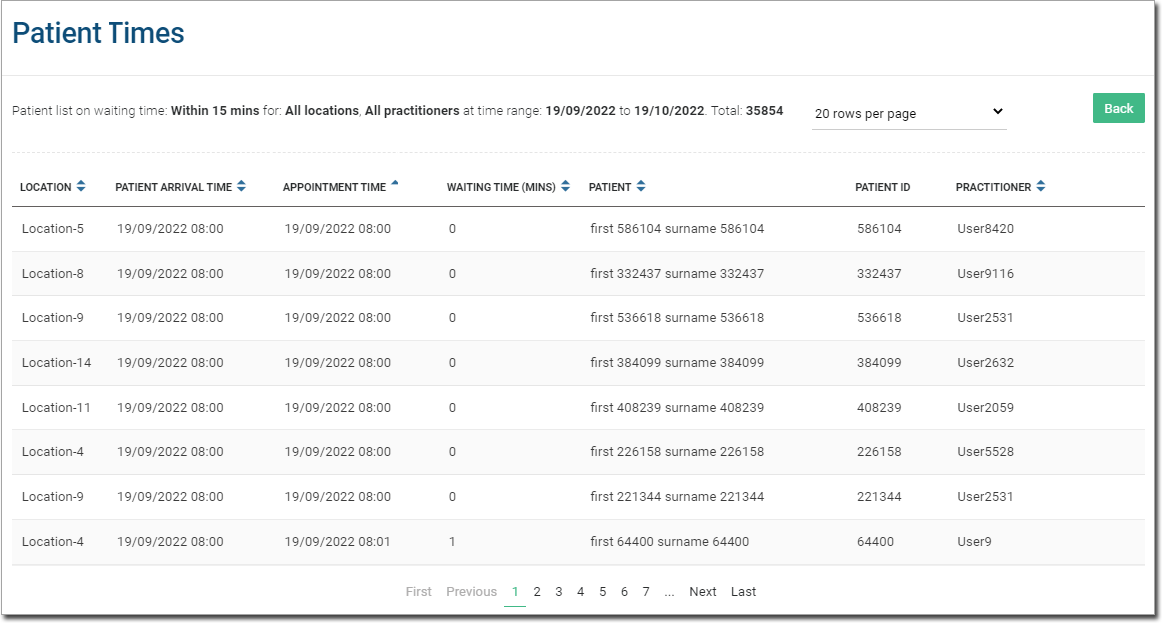 Patient Wait Times Detail Report Click a data segment to drill down to the details of individual patients, and how long they waited before being seen by the practitioner.