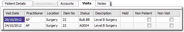 In the patient's details, select the Visits tab.