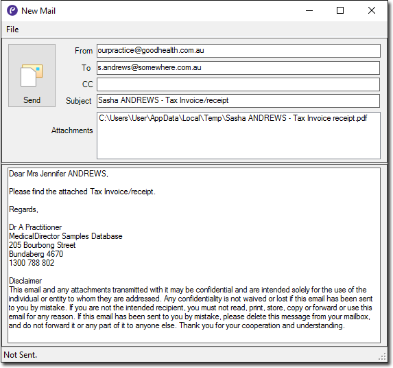 In the following examples we show you how to email a receipt, but the concept is the same for invoices and statements.