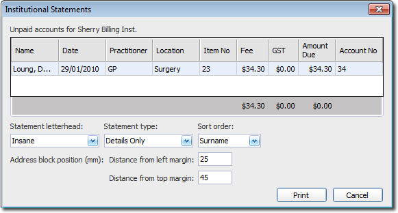 Print one-off statements for institutions or viewing amounts owed by an institution.