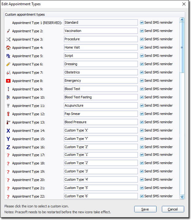 - You can create up to 39 custom appointment types. Appointment Type 1 "Standard Appointment" cannot be edited. Continue to Step 3 for instructions on how to customise appointment types.