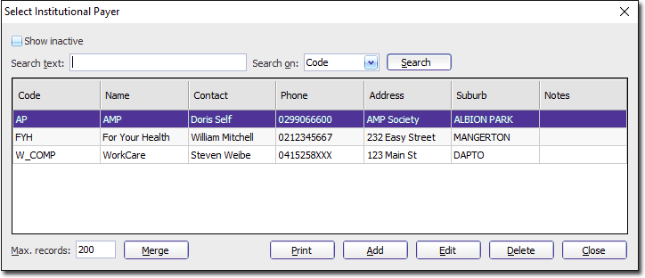 Locate and double-click the Institutional Payer record to merge into (the record you want to keep). You will be prompted to confirm this action.