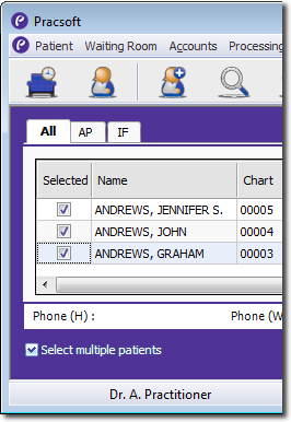 Within the Waiting Room, tick the Select Multiple Patients check box, which is located towards the bottom-left of the window. A new check box will appear to the left of each patient record within the Waiting Room.