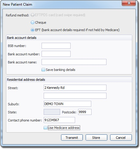 - Indicate whether you want to print the patient a PC1 form to take to Medicare Australia. It is not necessary to print this form if you use Online Claiming.