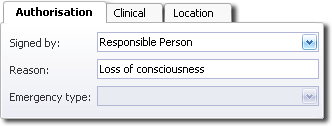 - Complete selections for each of the Authorisation, Clinical and Location tabs as necessary. Note that all fields must be completed to process a DVA Paperless Claim with Online Claiming. Note also that if you select a location other than 'Rooms' (the default), extra fields will appear on the Record Visit window to allow you to record things such as the distance traveled and the Provider Number (Facility ID)