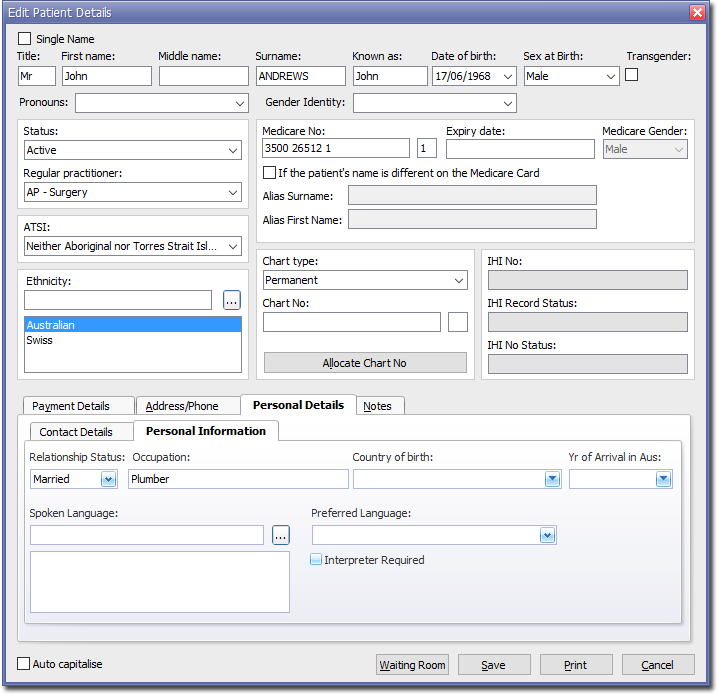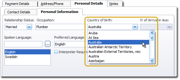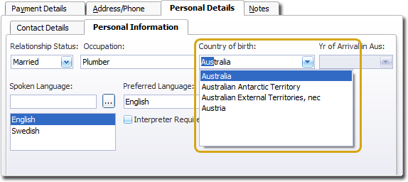 - To record the country of birth, select the Personal Details tab, and then the Personal Information tab, as shown above.