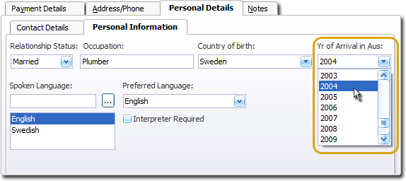(optional) If the patient's country of birth is other than Australia, indicate also their year of arrival in Australia.