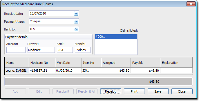 You can remove a voucher, provided the batch the voucher belonged to has not already been transmitted to Medicare Australia. Resubmitting a voucher involves removing it from the claim, thus 'unbatching' it. Once removed from a batch a voucher becomes editable, after which it can be retransmitted later.