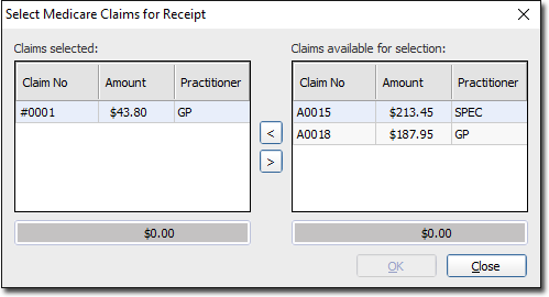 Ensure that the claim you want to remove a voucher from is in the Claims Selected list on the left-hand side of this window. Claims can be moved from side to side by either double-clicking them, or selecting them and clicking the