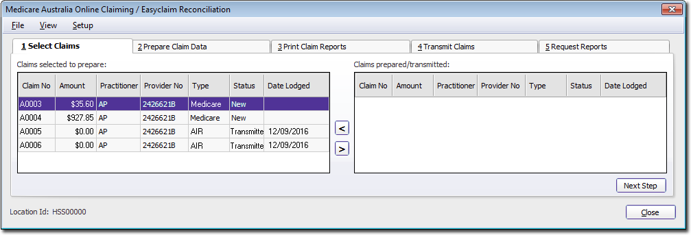 Select Processing > Online/Easyclaim Claiming. The Medicare Australia Online Claiming / Easyclaim