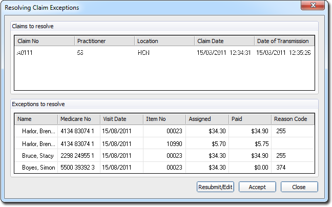 Exceptions must be resolved for each claim, for payment reports to be requested, and for receipting to occur.
