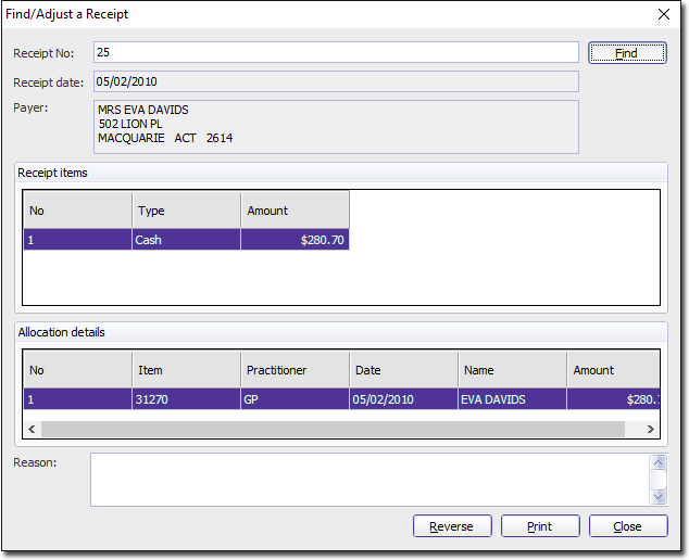 - Enter a reason for reversing the receipt in the associated text box.