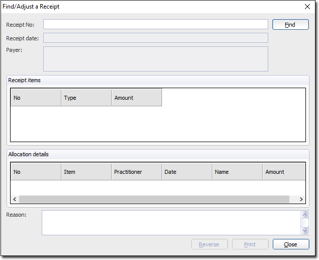 Select . The Find/Adjust a Receipt window appears.