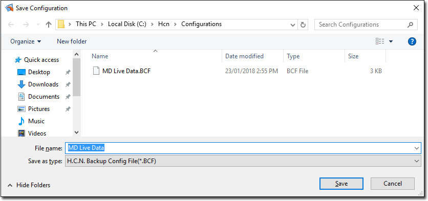 In the HCN Backup window, select the
