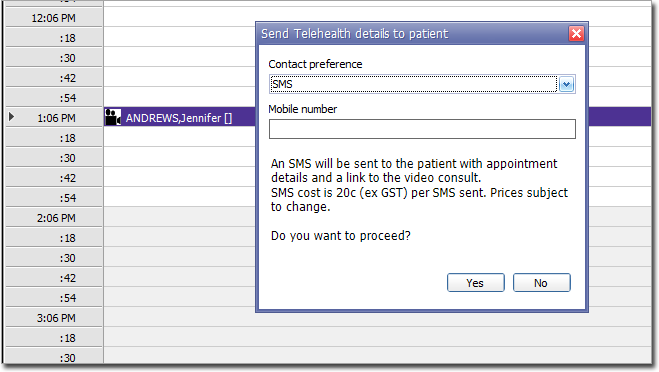 Make the appointment type 'Telehealth'. The following prompt appears.