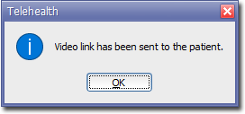 If you elected to send the video link via SMS or email, you will be prompted when the Telehealth video link has been sent to the patient. If you elected to copy the URL and send it manually, continue now to Step 6.