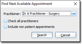 - Select the practitioner you want to conduct the search for via the associated drop-down list. Alternatively you can tick the Check All Practitioners check box to search against all practitioners.