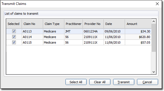 All claims prepared (but not transmitted) should have a tick in the box next to the claim number. The transmission of claims does not need to be performed at the same time as they are prepared.