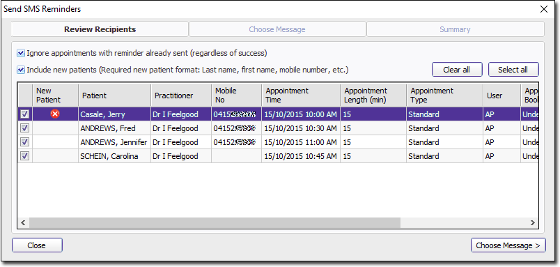 - Select a patient's appointment in the Appointment Book to send the message to,