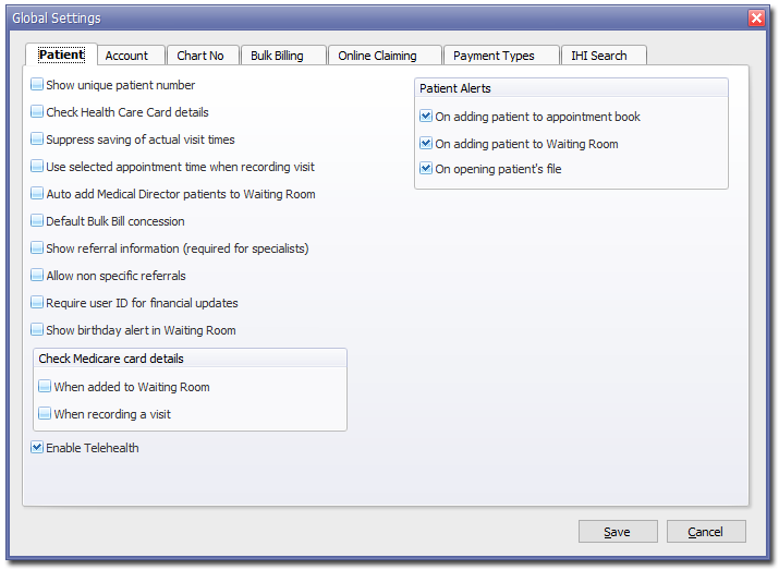 Configuration settings that apply across Pracsoft are included in Global Settings.